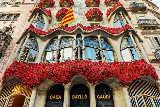 Casa Batllo Adorned With Roses To Celebrate La Diada De Sant Jordi