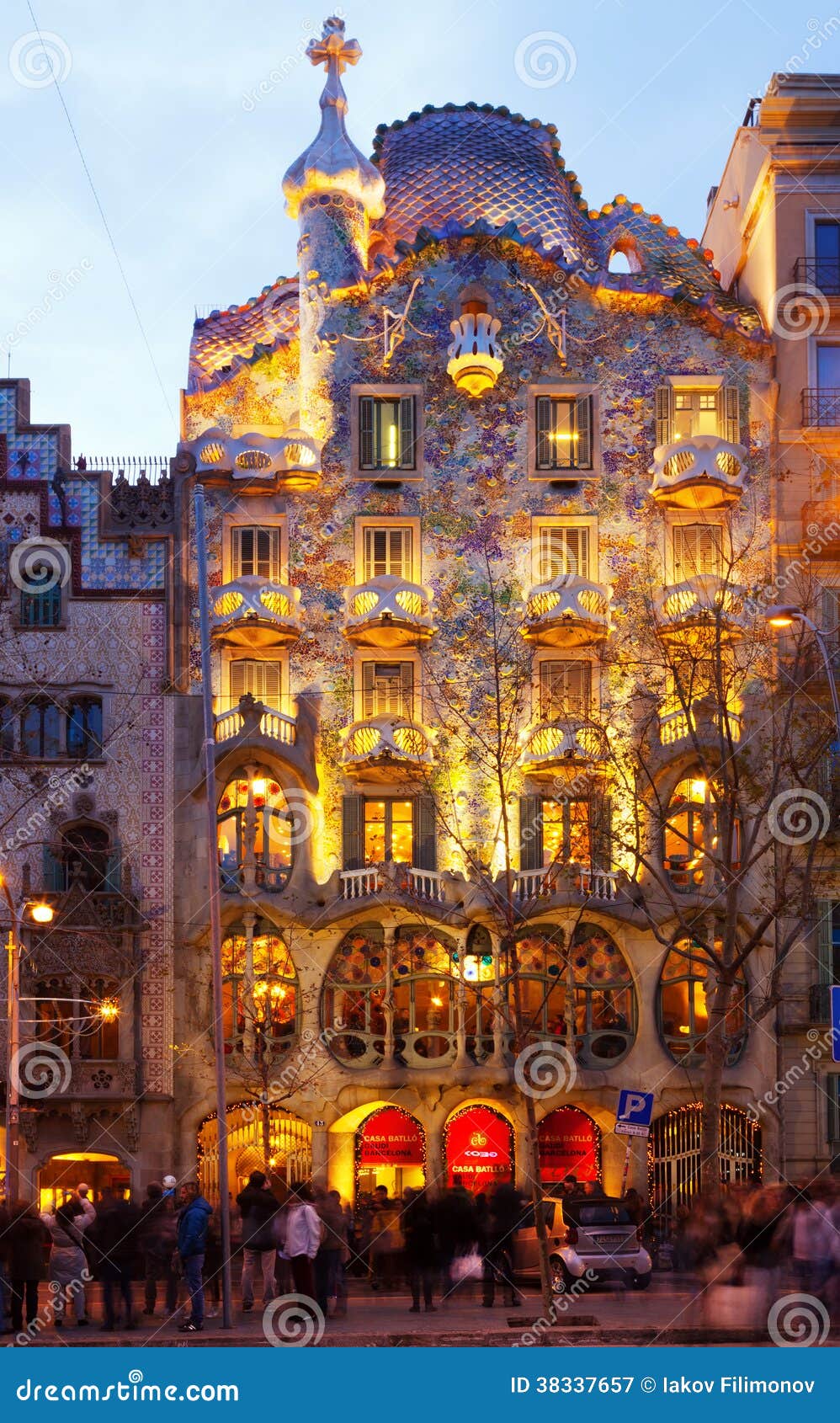 Gaudi S Casa Batllo In Barcelona At Night Editorial Photography