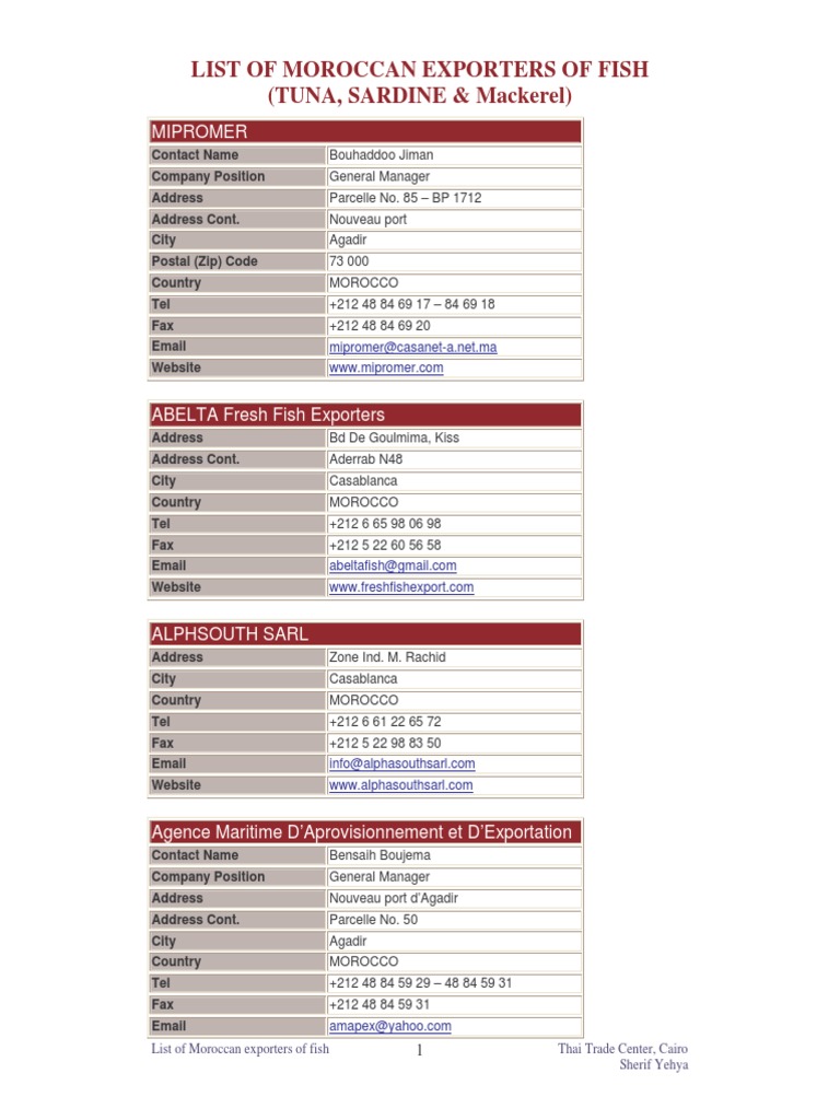 Moroccan Exporters Of Fish Casablanca Morocco